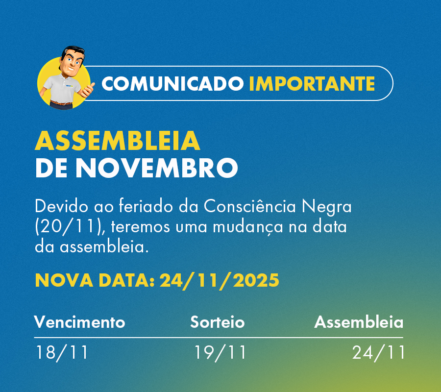 Mantenha as parcelas do seu consórcio em dia e não perca sua contemplação por sorteio e lance.